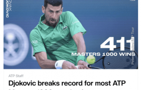 北京时间3月24日,在ATP1000迈阿密大师赛第三轮,塞尔维亚名将德约科维奇以6比1、7比6(1)...